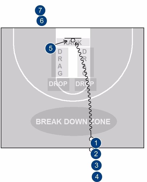 I had a good look at the drill because I found that the movement of the rebounder isn’t consistent with the way a player in that position would move in the Dribble Drive Offense.