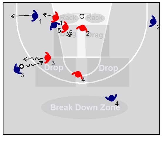 1. To simplify for the 1st year running this offense, I’m looking at using the rack and drag as 1 and using the drop zone as a 2nd area. Do you think this will fly or is a good idea. I have a young hs varsity team who will be adjusting to a totally new way of playing basketball with new coaching staff.